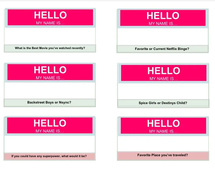 As the gals excitedly arrived and got settled in, we started passing around name tags, because hey with 30 of us, we'll need the occasional reminder and I actually made some custom name tags (example included - shoot me an email if you'd like to order some ;)), with some fun getting to know you questions to help break the ice in case you hit a moment of silence lol :) although that's rarely a problem ;). We had a awesome group 75% that had come before and 25% whom were BRAND NEW to the "GTB Experience".