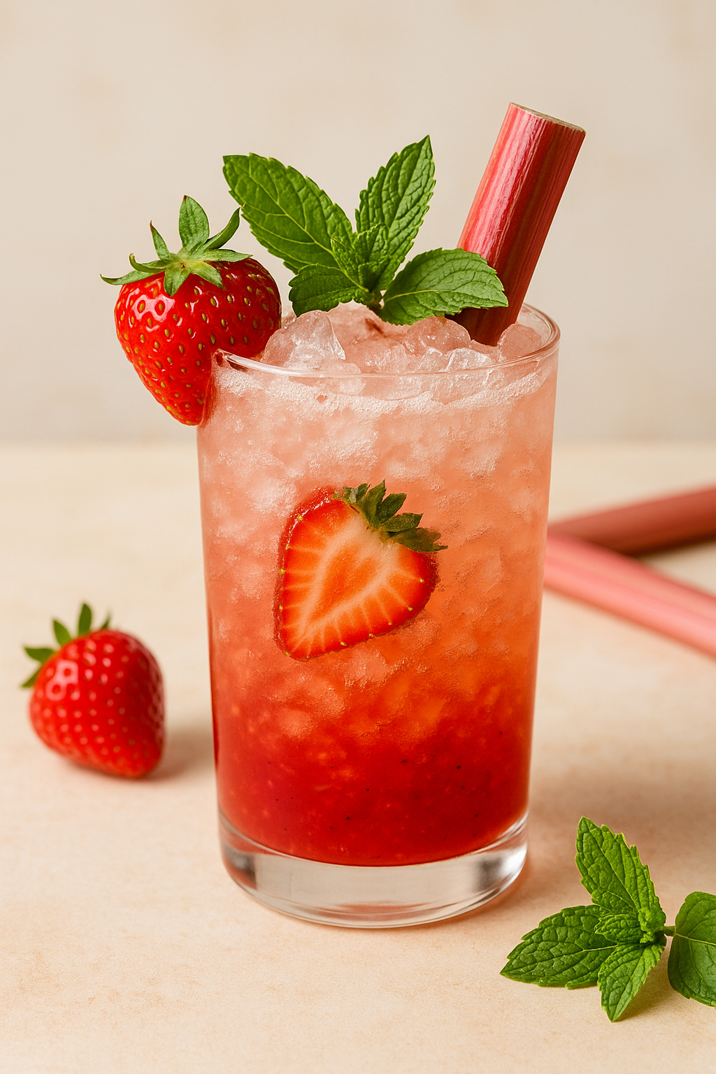 There's something so romantic about this combinationโthe sweet familiarity of strawberries paired with the tart sophistication of rhubarb. It's the kind of drink that makes you want to plan garden parties and wear flowing sundresses and have deep conversations about life and dreams.