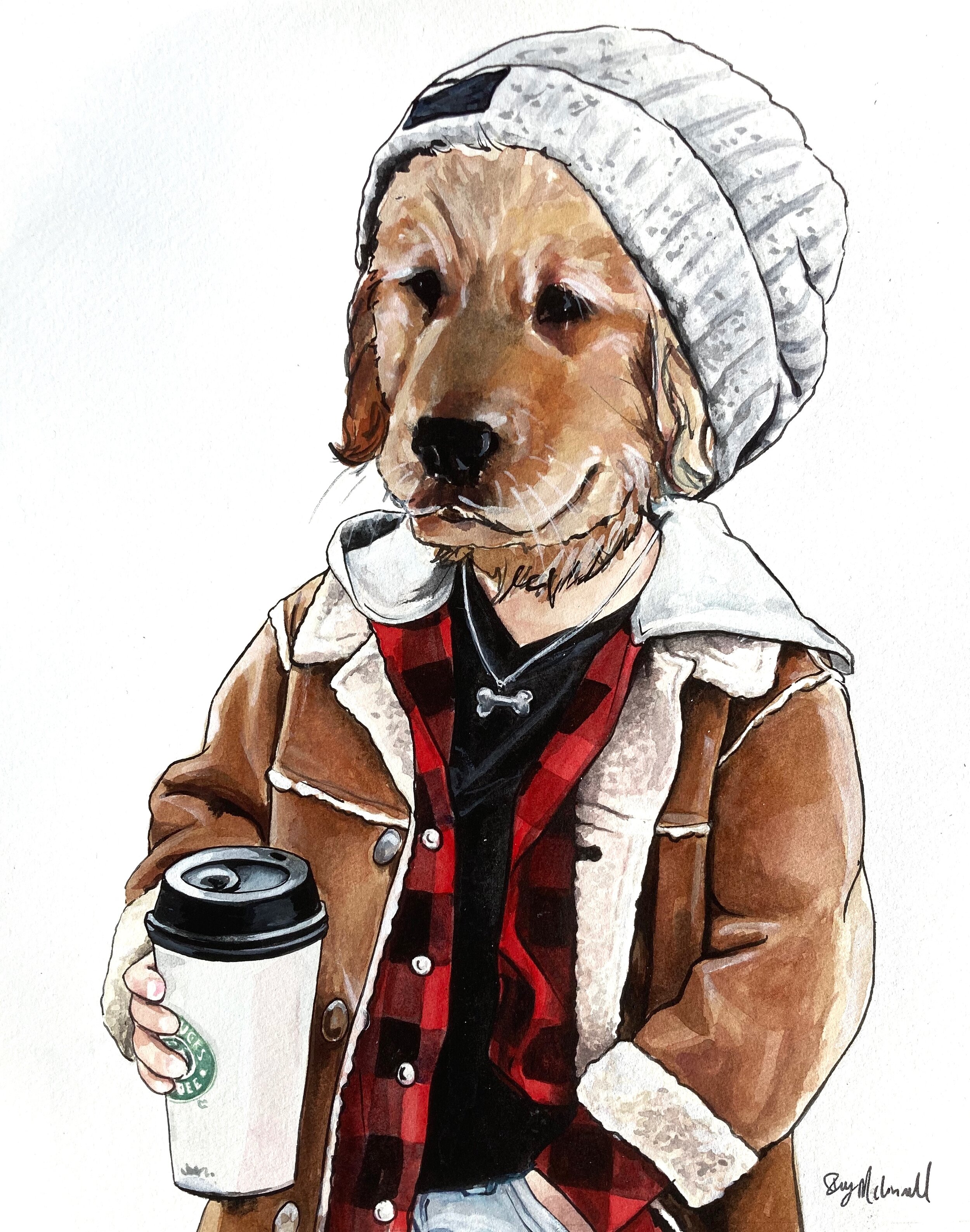 I paint a number of other subjects and can cater to most anything. I also have prints available of my Dogs as Iconic people or little Holiday characters! The prints are primarily these fun dogs wearing clothing pieces! Check out my website for my new collection of prints!